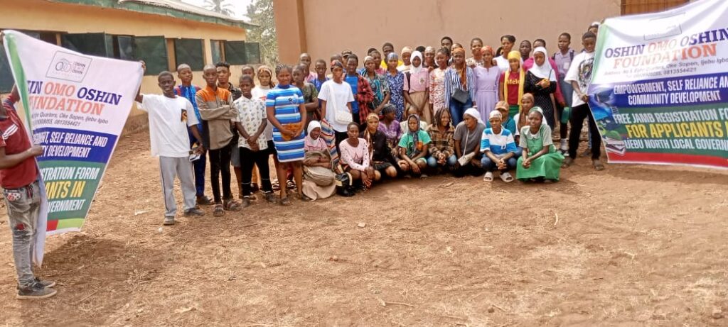 The Oshin Omo Oshin Foundation in votive fulfillment of her three points agenda of Empowerment, Self Reliance and Community Development once again announce her 2025 Annual Free JAMB Form for two hundred (200) interested applicants in the Ijebu North Local Government of Ogun state, the project which started in 2024 is aimed at ensuring that annually two hundred or more eligible applicants are given free JAMB forms and other supports needed for their admission in tertiary institutions.